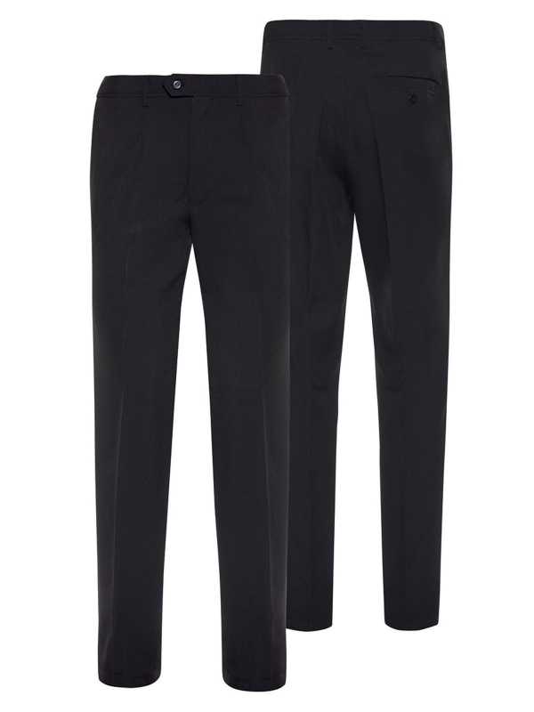 Pantalone nero da cameriere Amelia in poliestere 100% a una pinces, antipiega, antimacchia. Ideale per i servizi di ristorazione, sala, ricevimento e bar. Due tasche frontali e due tasche posteriori.