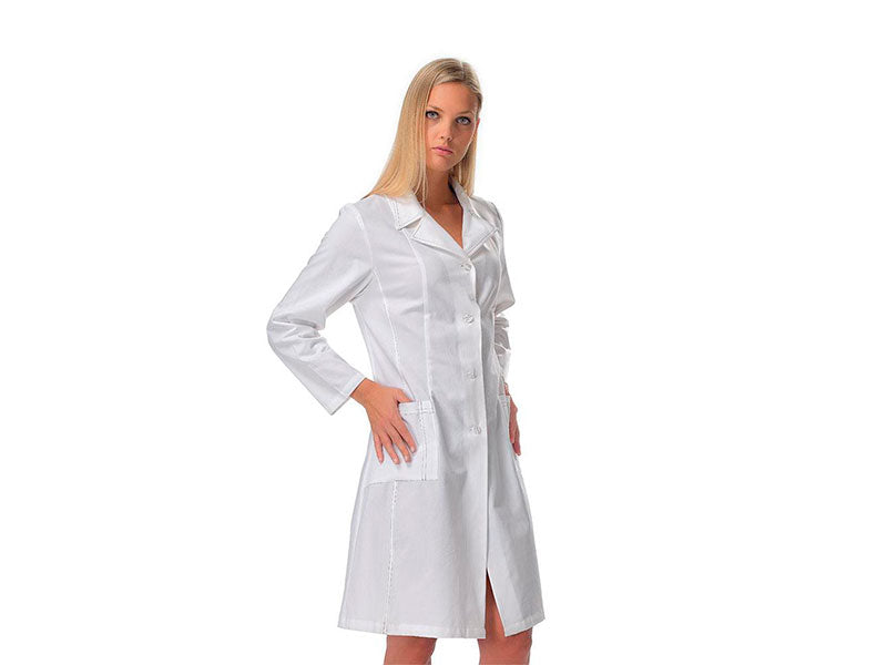 Amelia Camice Bianco Donna da Laboratorio modello Ginevra - norma ce - martingala cucito dietro, polso con elastico - Camice medicale